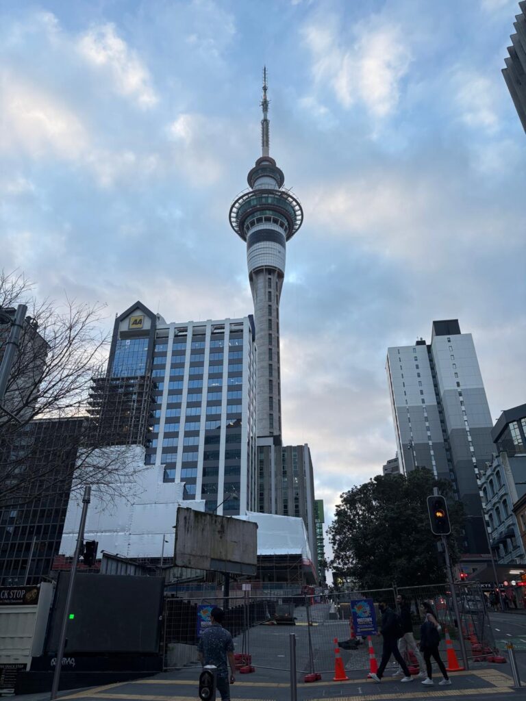 We parked in the middle of downtown. My host mom headed off to the location for her performance, and Charleen and I started to explore the city. Our first stop was the shopping mall “Westfield Newmarket.” I’ve noticed that there are an incredible number of shopping centers in Auckland — this must have been at least the fourth or fifth one I’ve come across in the past week. The Westfield Mall is a huge, five-story,: modern building with lots of different stores. But first, we grabbed something to eat, since the food here in New Zealand is really delicious and we were both very hungry. After that, we strolled through the various shops and had a few conversations with people along the way. I noticed again how incredibly friendly and interested people in New Zealand are. Later, we took a bus into the actual city center because we really wanted to see the Sky Tower up close. It’s unbelievably tall and stands like a pillar right in the middle of the city. In the hotel across the street, there’s a large souvenir shop with all kinds of items — especially noticeable are the kiwis, which you can buy in every imaginable form. I picked up a few souvenirs for home and a birthday present for my dad.