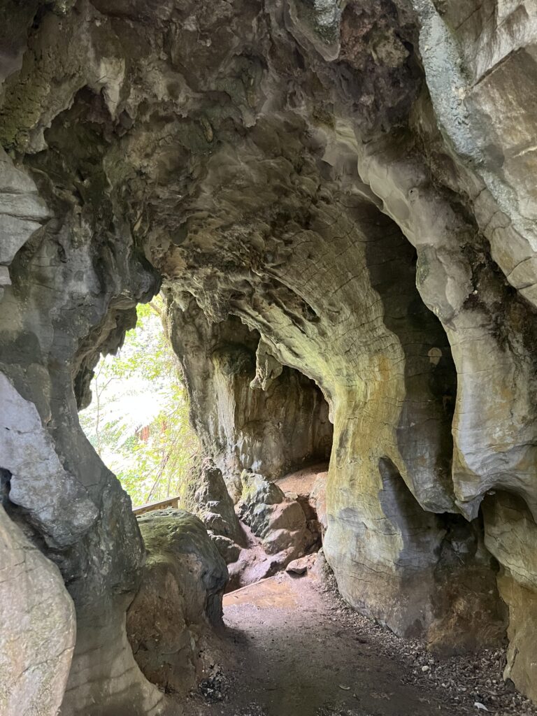 After our picnic, we went on a short walk through the forest, which took about 40 to 50 minutes. It was really relaxing, and the air was warm and a bit humid. On the way, we also walked through two small caves, which was pretty cool.