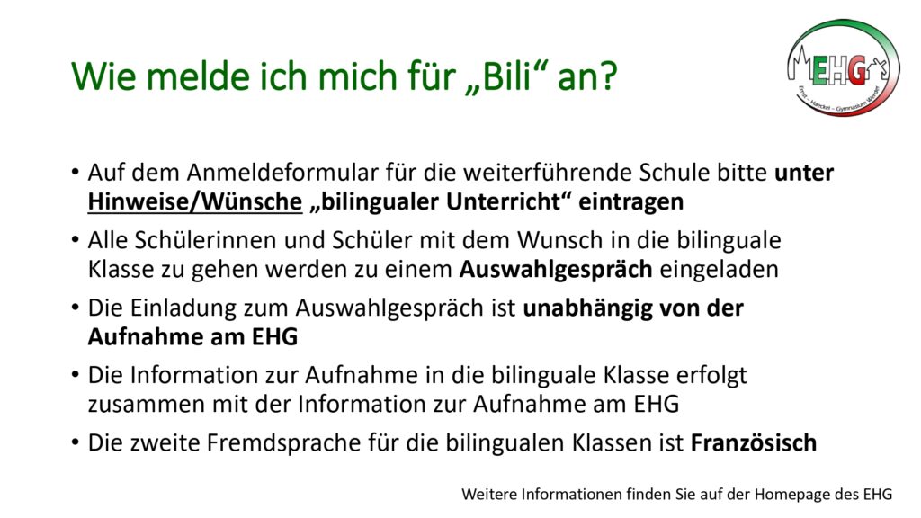 Bilingualer Unterricht am EHG – was bedeutet das?