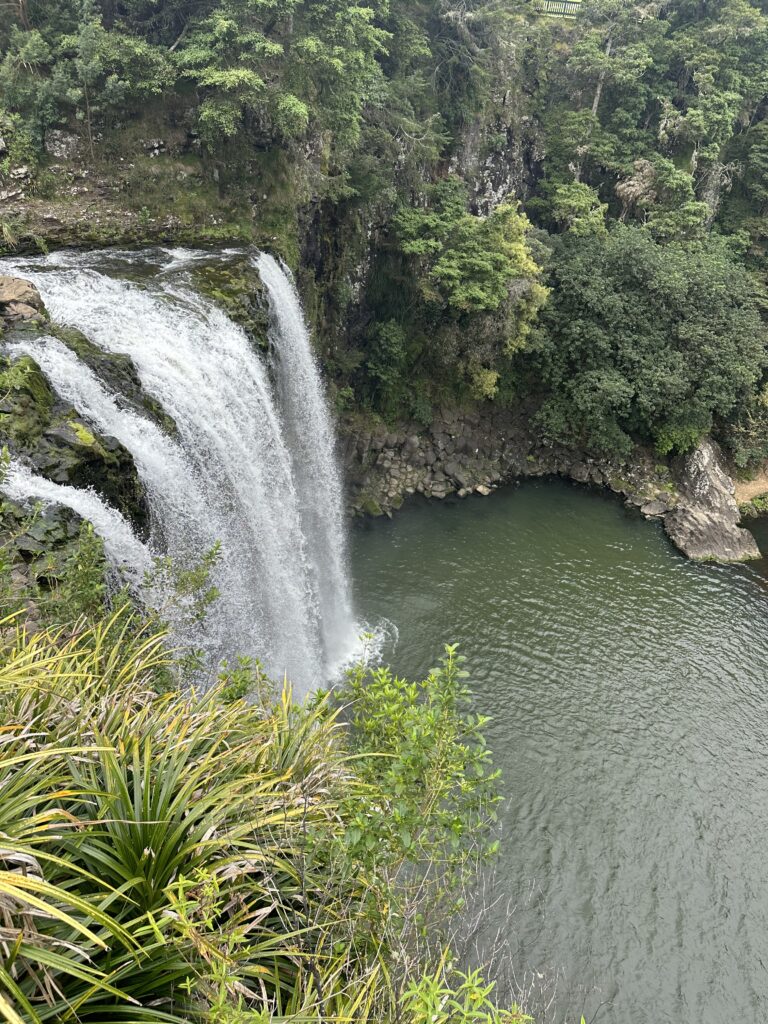 After that break, our journey continued to Whangārei Falls. It was an absolutely incredible view. We had a few minutes to take it in before it was time to leave again. On the bus ride to our next stop, we drove past hilly countryside with many cows and sheep.
