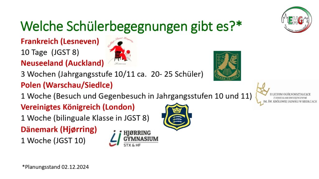 Unter Aktuelles können immer die neusten Austausche nachvollzogen werden, beispielhaft wird hier der Dänemarktaustausch dargestellt: