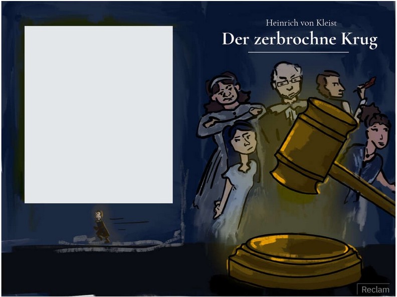 Der Reclam-Verlag hat nach dem besten Cover für das Drama „Der zerbrochene Krug“, der aktuell auch als Abiturlektüre gelesen wird, gesucht – und Zoe Müller aus der 12.Klasse hat mit Ihrer Interpretation einen tollen vierten Platz belegt. Mehr Infos sind unter https://www.reclam.de/coverwettbewerb-kleist zu finden.